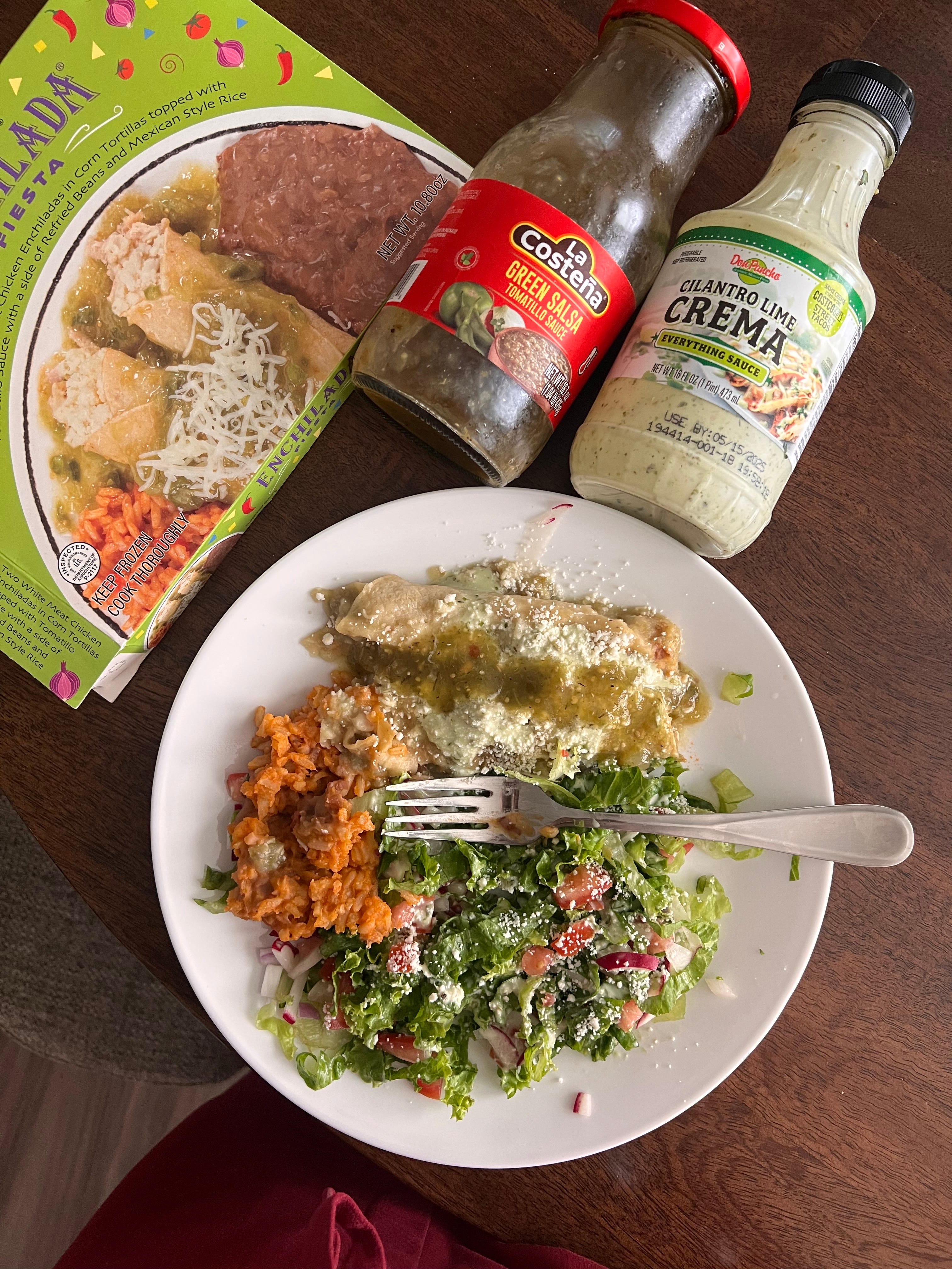 • Fats: Cilantro Crema Lime dressing, Cotija cheese, & the cheese on the enchiladas